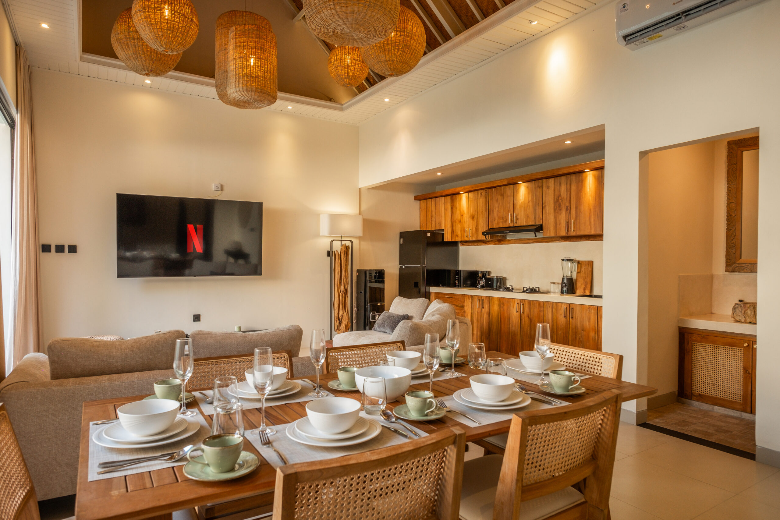Enjoy a stylish stay in Berawa, just minutes from Finns Beach Club and Atlas Beach Fest. This modern tropical villa features a private pool with garden views, a sunny terrace, three en-suite bedrooms, a spacious open-plan living area, and a fully equipped kitchen. Located close to Berawa Beach, cafés, restaurants, boutiques, and vibrant nightlife, it’s the perfect base for your Canggu getaway.